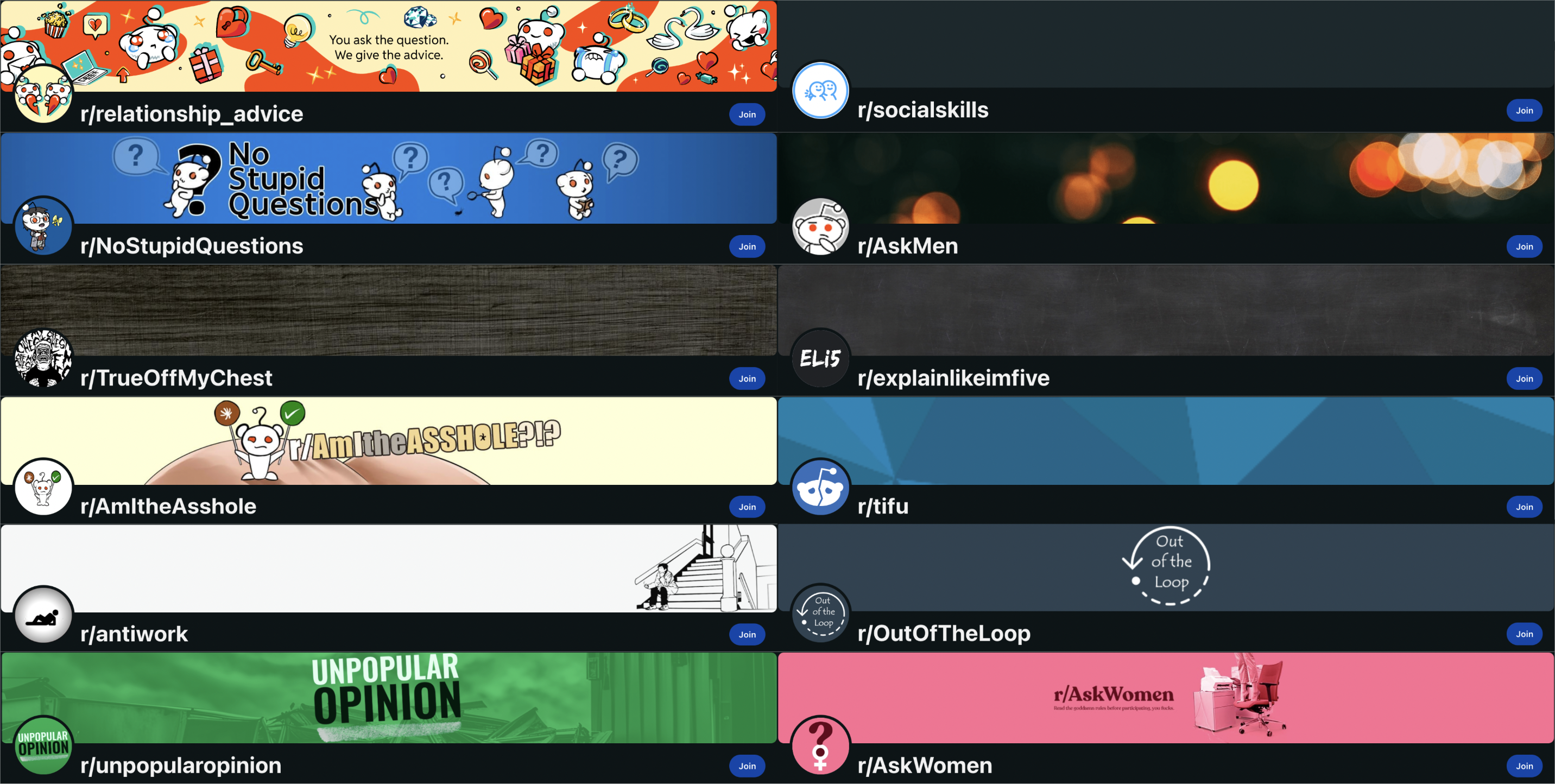 By analyzing a vast collection of storytelling subreddits, which can again be seen above in Figure 1, we were able to extract rich information that gave us a better understanding of the details and characteristics of posts on Reddit. In doing so, we explored several different avenues related to storytelling on Reddit, providing us with a well-rounded understanding of textual content and other features of Reddit posts.