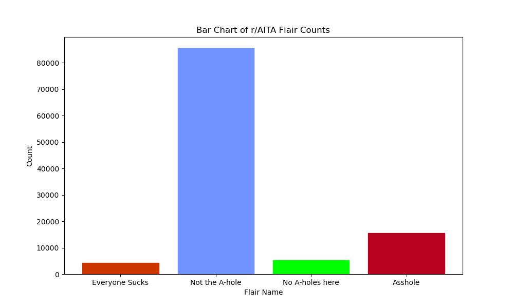 The number of posts that are flaired as each of the flairs in r/AITA is shown in Figure 6: