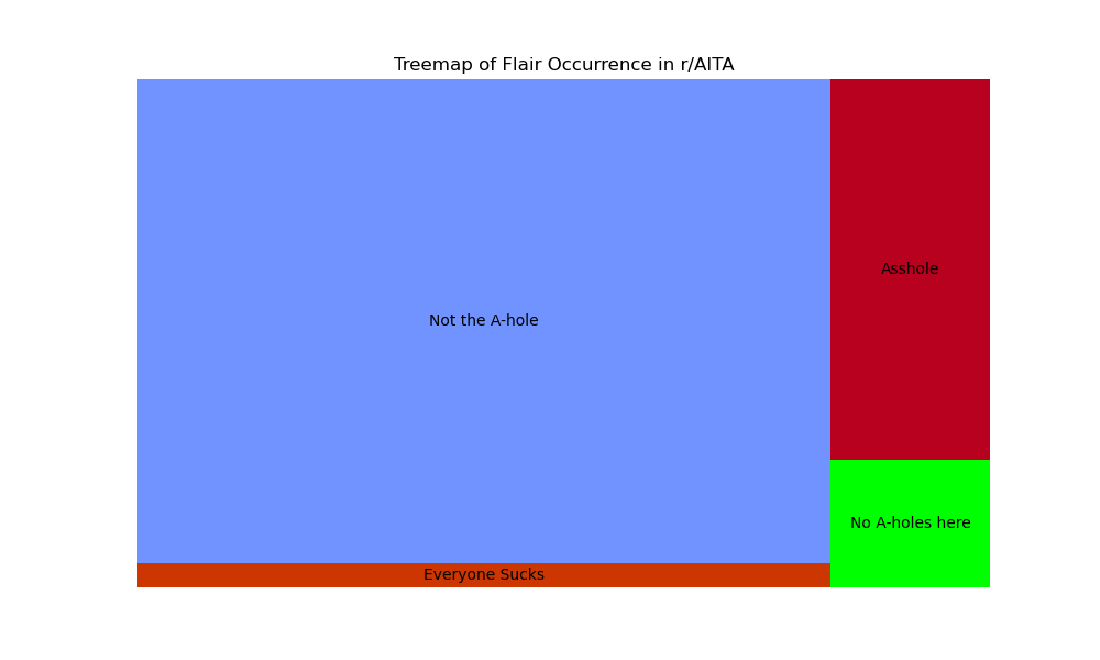 As we can see, Redditors, by and large, “judge” the majority of original posters as “Not the A-hole,” but there are plenty of posts where the judgments resulted in different outcomes. The frequency of these flairs’ occurrences and the possible reasons behind these occurrences, will be explored further in the NLP and ML sections.