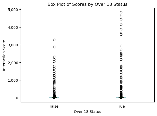 over_18 statusWe can infer from the plot that NSFW content increases engagement with the post, although more analysis will be conducted in subsequent sections.