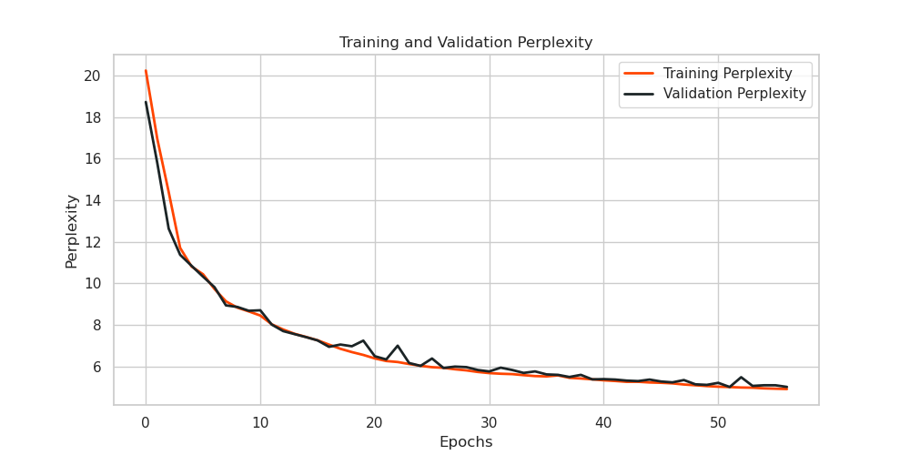 The training and validation perplexities are shown in Figure 11: